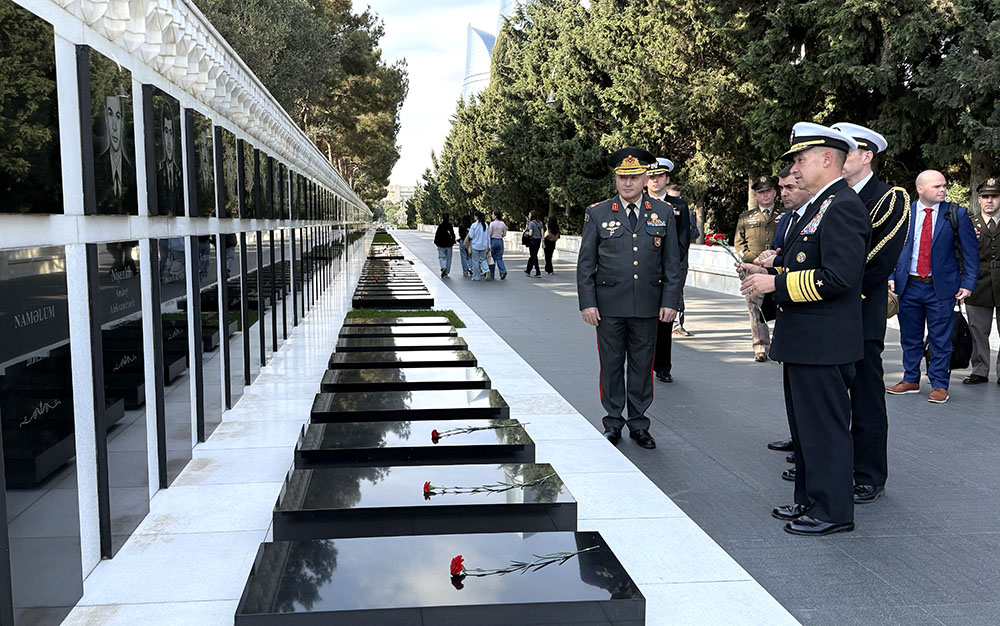 Əvvəlcə qonaqlar Şəhidlər xiyabanını ziyarət edərək Vətən uğrunda canlarından keçən şəhidlərimizin xatirələrini ehtiramla yad ediblər.