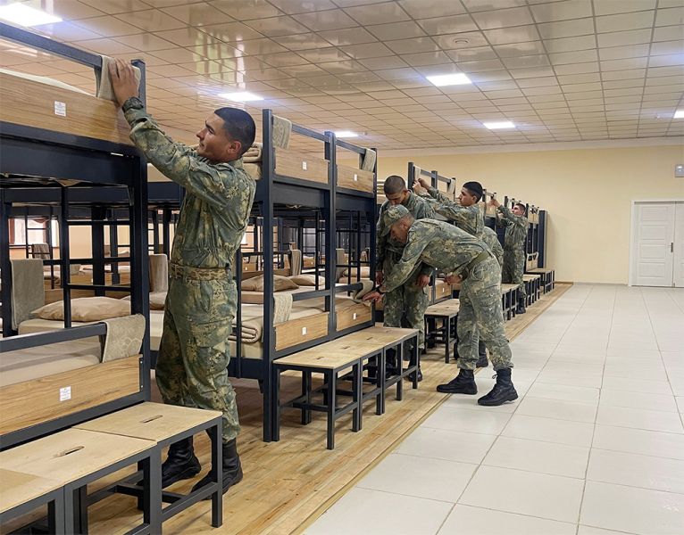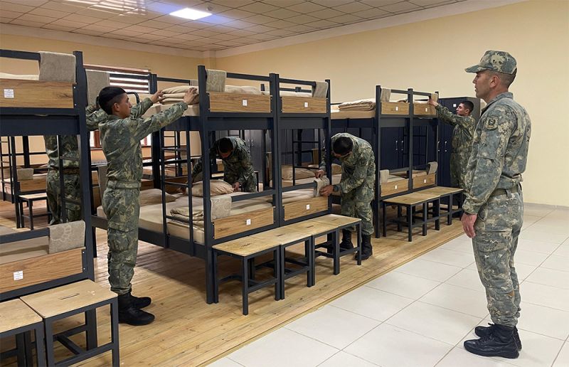 Hərbi qulluqçuların rahat və səliqəli şəraitdə xidmət etməsi müasir ordunun əsas tələblərindən biri hesab olunur. Əsgər yataqxanaları bu baxımdan xüsusi əhəmiyyət daşıyır. Olduğumuz bölmədə əsgər yataqxanasında mövcud olan şəraitlə tanış olmaq məqsədilə müddətdən artıq həqiqi hərbi xidmət hərbi qulluqçusu baş əsgər Şahin Sücəddinov ilə birlikdə ora yollandıq. Ş.Sücəddinov bizə əsgər yataqxanası barədə məlumat verərək dedi ki, adətən ikimərtəbəli çarpayılarla təchiz olunan yataqxanada hər bir əsgərin şəxsi əşyalarını yerləşdirməsi üçün ayrıca dolabı olur. Yataqxananın təmizliyi hər gün yoxlanılır, əsgərlərin öz yerlərini səliqəli saxlamalarına ciddi nəzarət edilir.