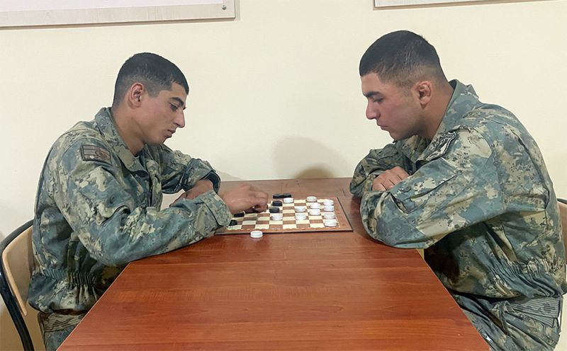 Əsgərlər Nəcəfəli Süleymanov və Ramal Bağırzadə stolüstü idman növü olan dama oyunu ilə məşğul idilər. Üstünlüyü əsgər Ramal Bağırzadə qazanmışdı. Görünür, Ramal dama oyununun peşəkarıdır.