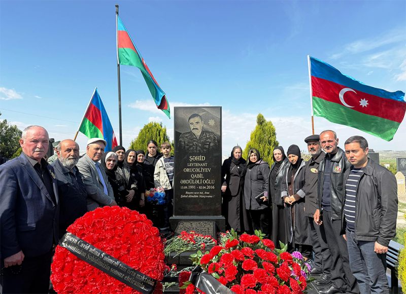 Sonra şəhid Qabil Orucəliyevin məzarı ziyarət olunub, üzərinə tər güllər düzülüb, ruhuna dualar oxunub.
