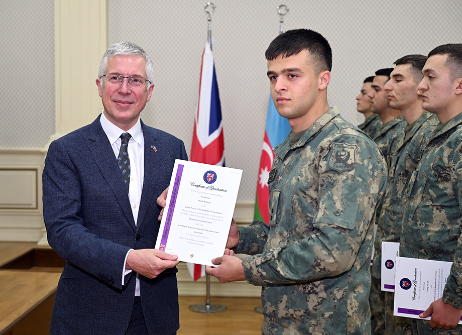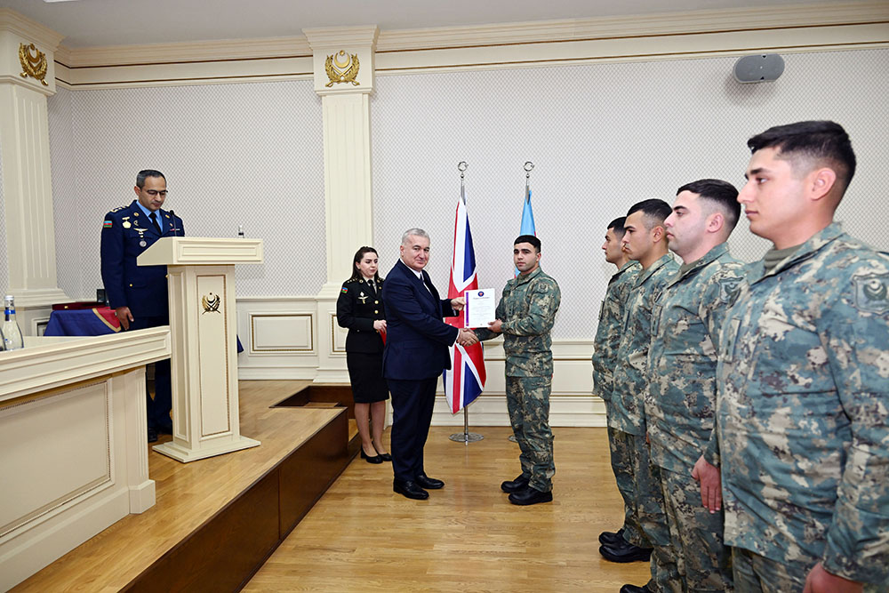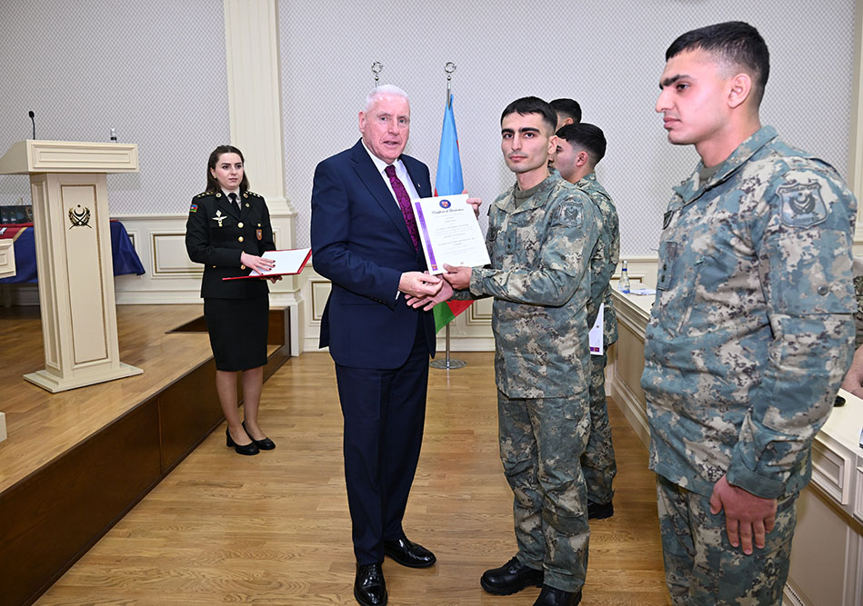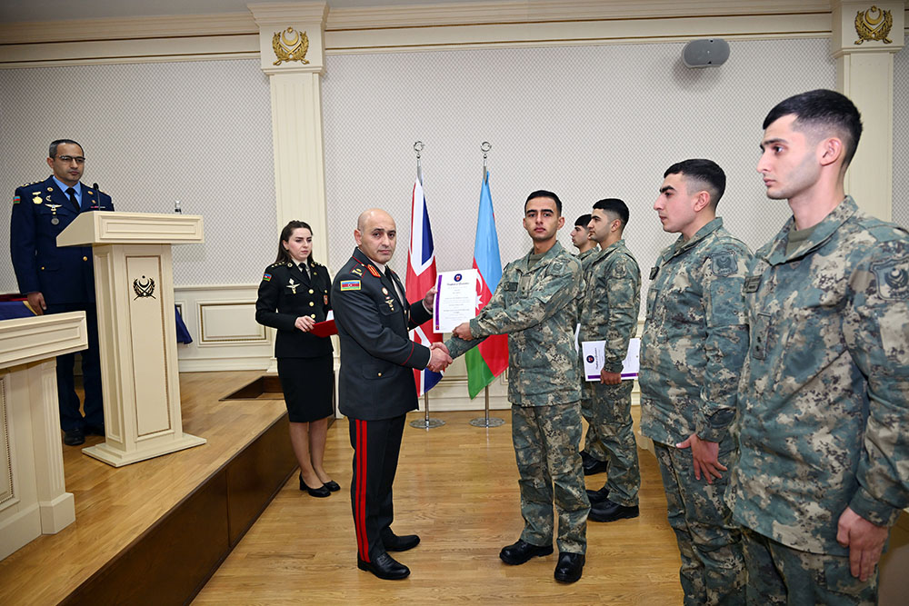В заключение господин Агиль Гурбанов, ректор Национального университета обороны генерал-майор Гюндуз Абдулов, представители Соединённого Королевства и послы вручили сертификаты выпускникам, успешно завершившим обучение.