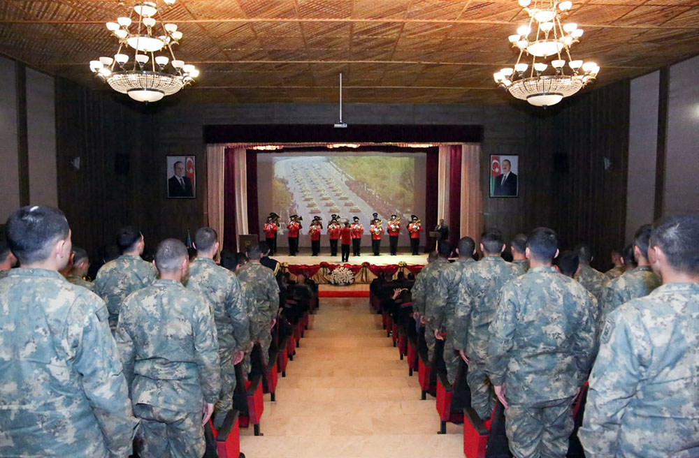 В мероприятии с участием личного состава Министерства обороны и Отдельной общевойсковой армии, а также других гостей, минутой молчания была почтена память Общенационального лидера азербайджанского народа Гейдара Алиева и шехидов, отдавших жизнь за независимость, территориальную целостность и суверенитет нашей страны. Прозвучал Государственный гимн Азербайджанской Республики.