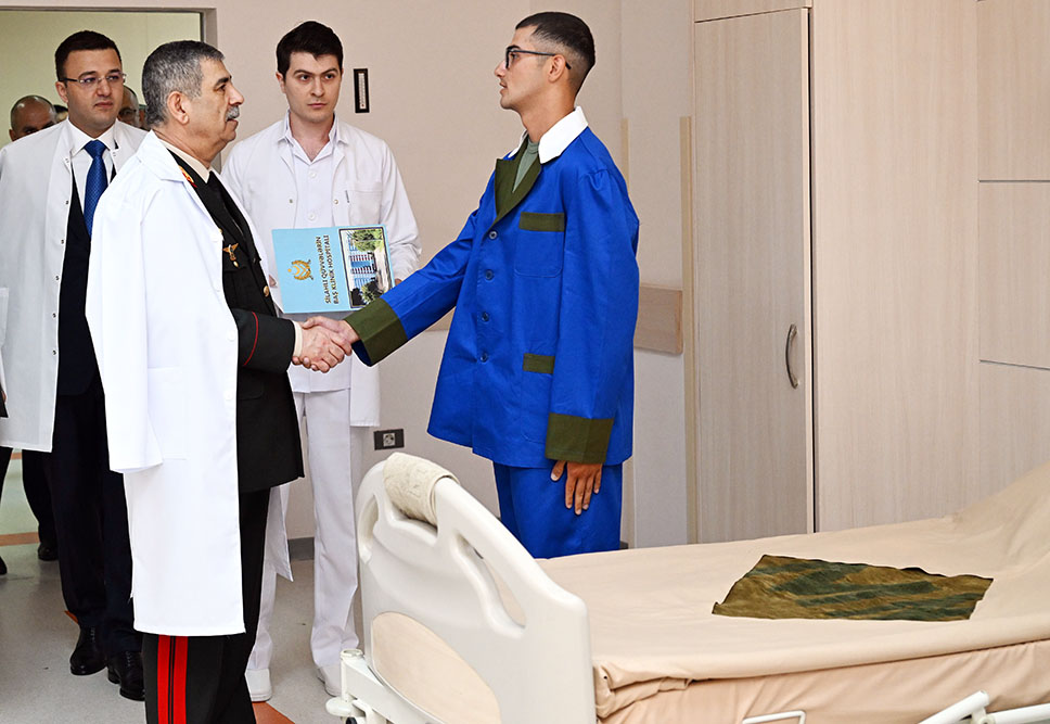 Министр обороны генерал-полковник Закир Гасанов встретился с медицинским персоналом и проходящими лечение военнослужащими, и передал им поздравления Президента Азербайджанской Республики, Верховного Главнокомандующего Вооружёнными Силами Ильхама Алиева по случаю 26 Июня — Дня Вооружённых сил и 107-летия образования Азербайджанской Армии.