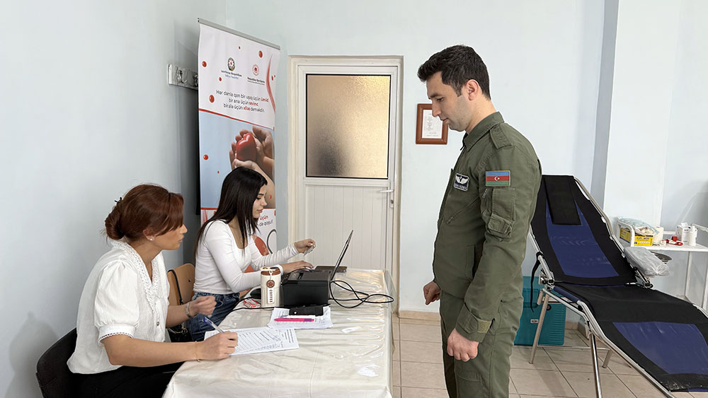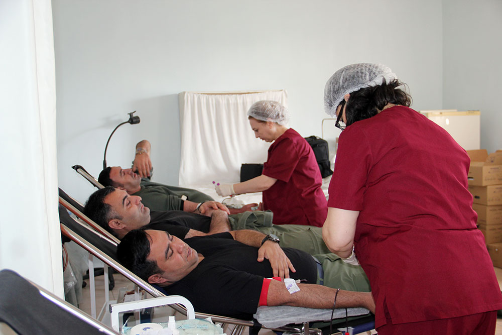 В рамках программы «Во имя жизни без талассемии», реализуемой по инициативе Первого вице-президента Азербайджанской Республики, президента Фонда Гейдара Алиева Мехрибан ханым Алиевой, в Н-ской воинской части Военно-воздушных сил была организована добровольная акция по сдаче крови.